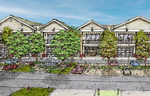 "Lowcountry plantings, layered, lush, Southern. A tiered stone fountain. The sound of running water. Behind each garage and below each balcony, the courtyard is at the center of CarVillage. It's the view we share, and the ground we meet on.