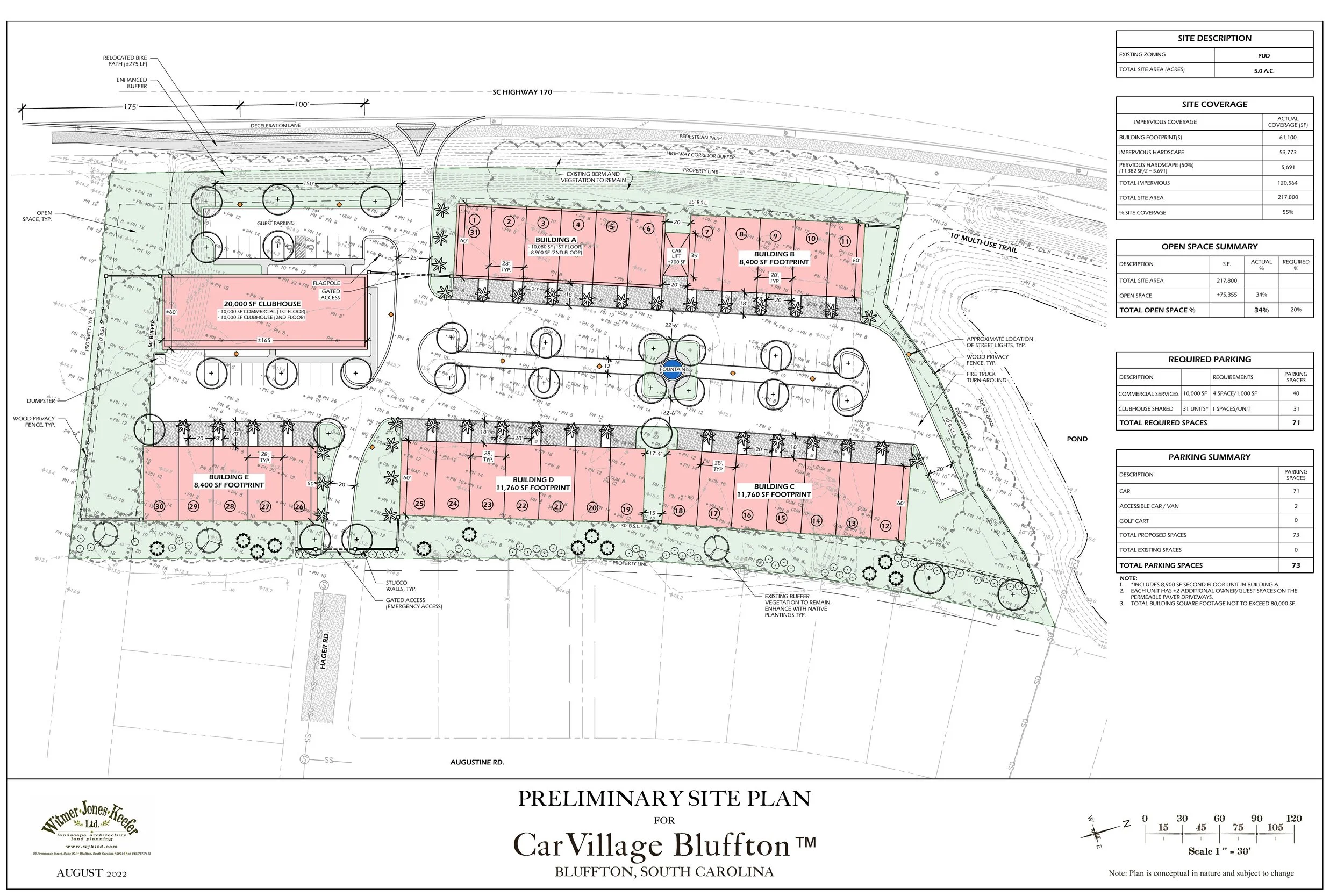 We had the only approved car condo zoning in Bluffton, and it was transferable to another location. A first-of-its-kind horizontal property rights document in South Carolina. All the permits, legal structure, and engineering, all ready for the next site.